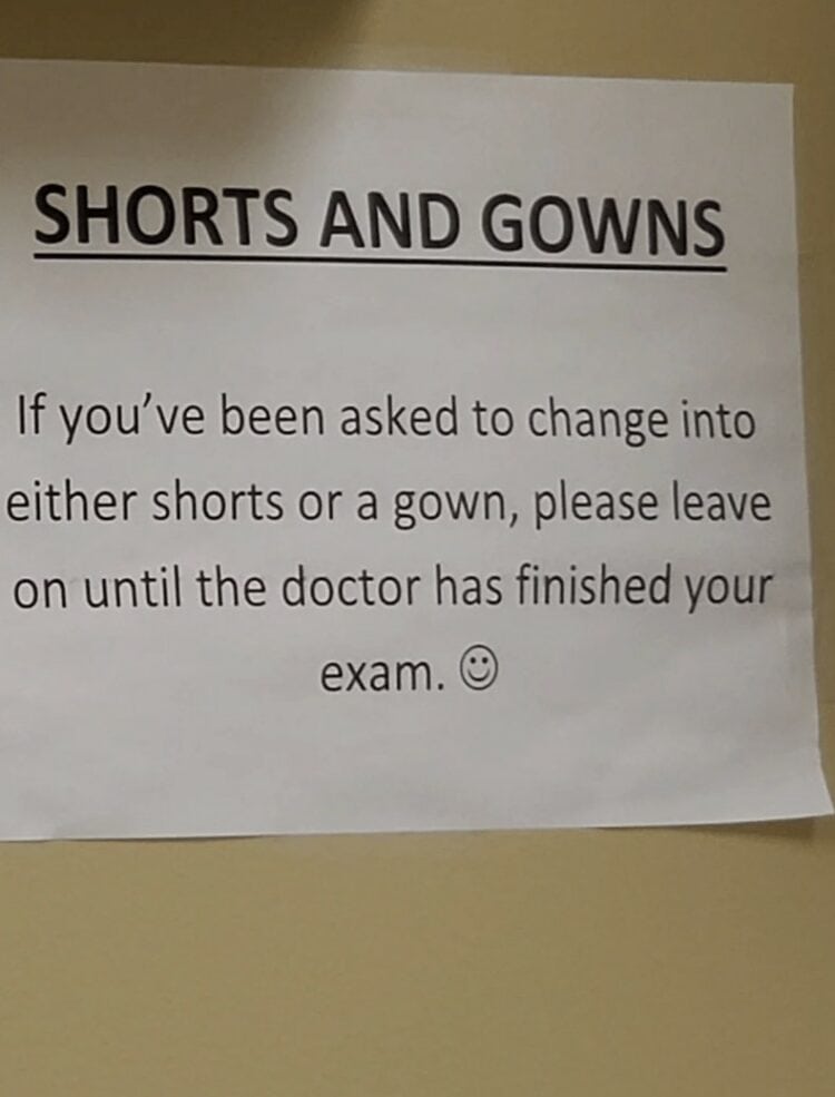 if-been-asked-change-into-either-shorts-or-gown-please-leave-on-until-doctor-has-finished-exam