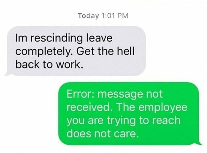 And when it does break? Oh boy, do people get creative. The Facebook page ‘I Quit My Job by Text‘ is pure gold, showcasing hilarious text exchanges between fed-up employees and their (probably clueless) bosses. So check out some of the funniest text messages people sent when they decided they’d had enough and quit their jobs in the most entertaining ways possible.